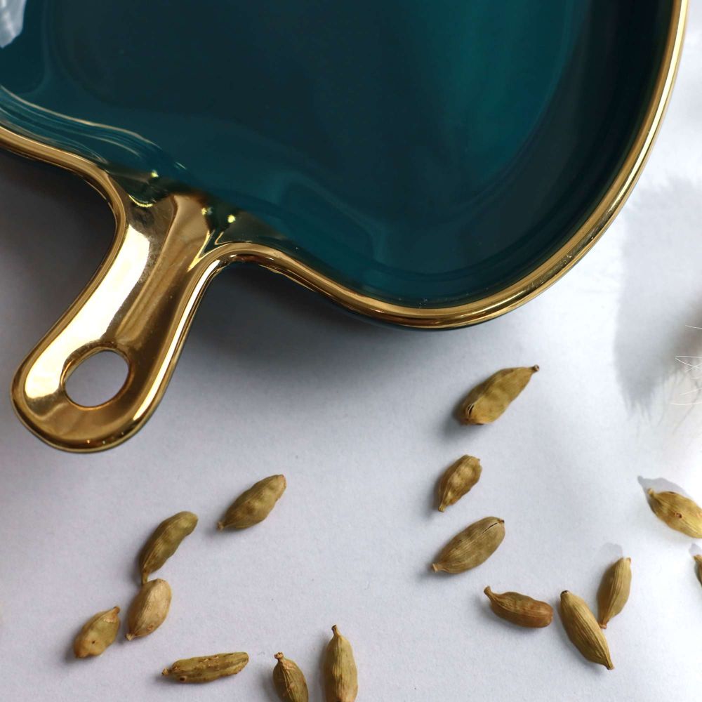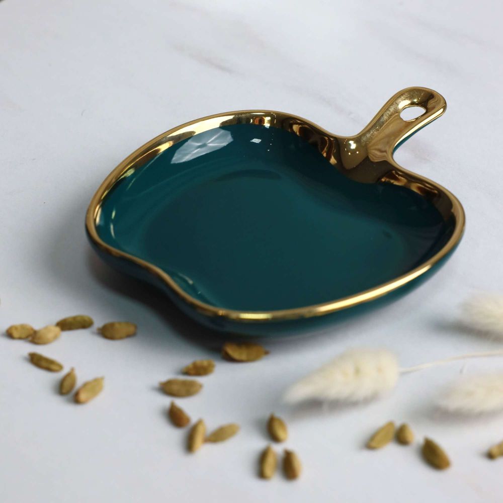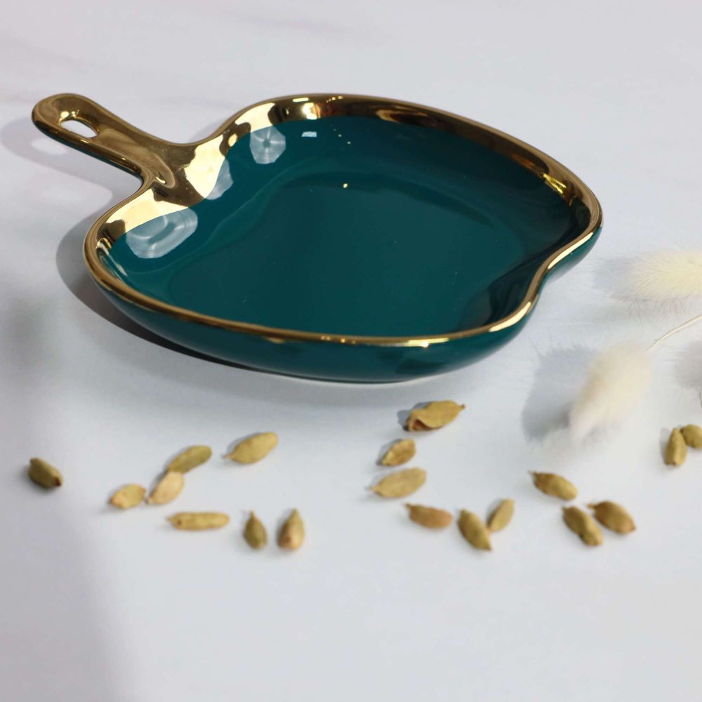 Блюдо фигурное MOONSHINE, керамика, темно-зеленый+золото, 18см