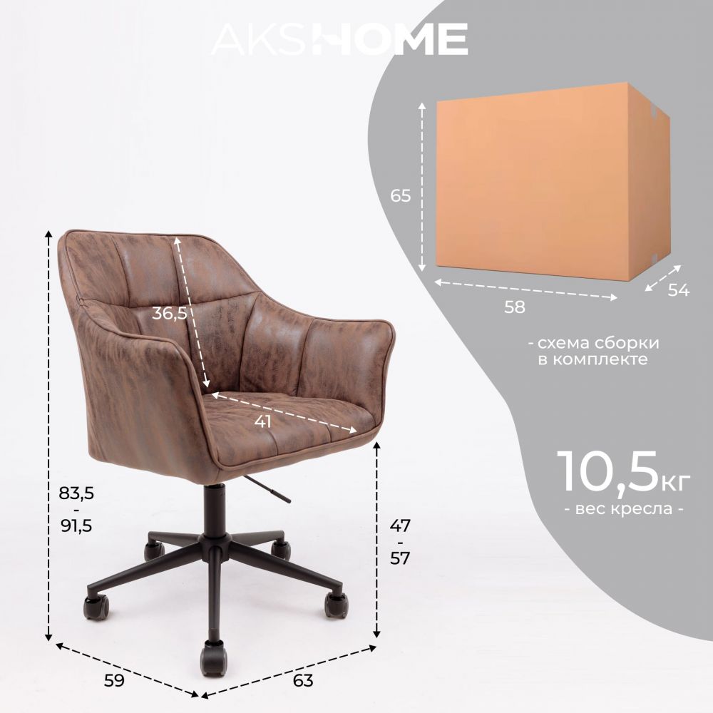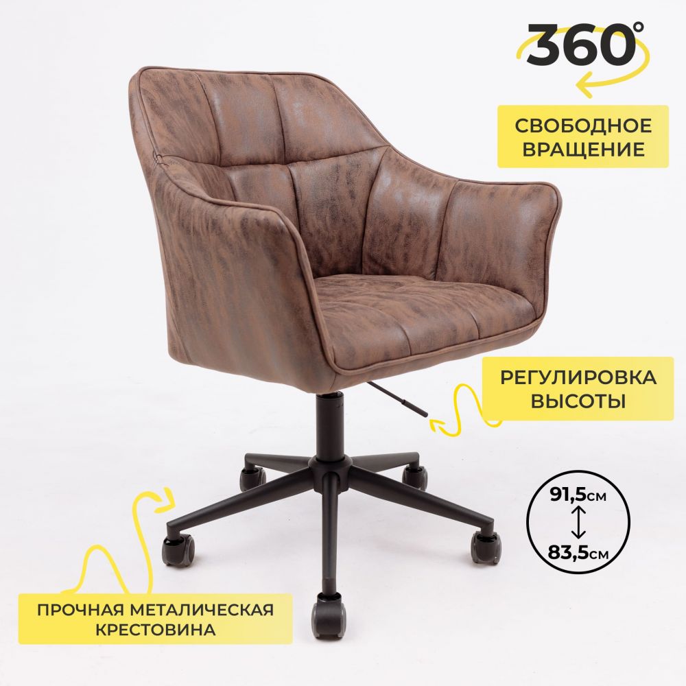 Кресло BARREN, поворотное, ткань, винтажный коричневый/черный