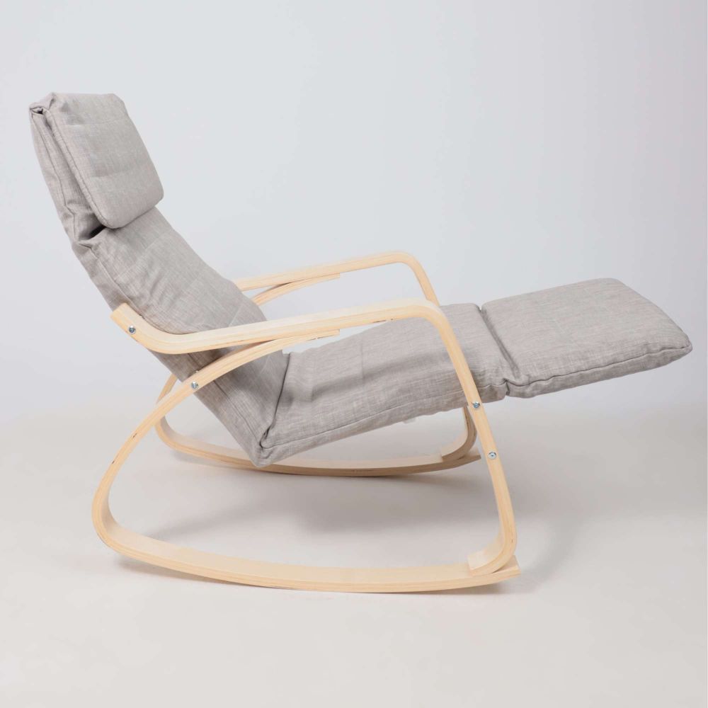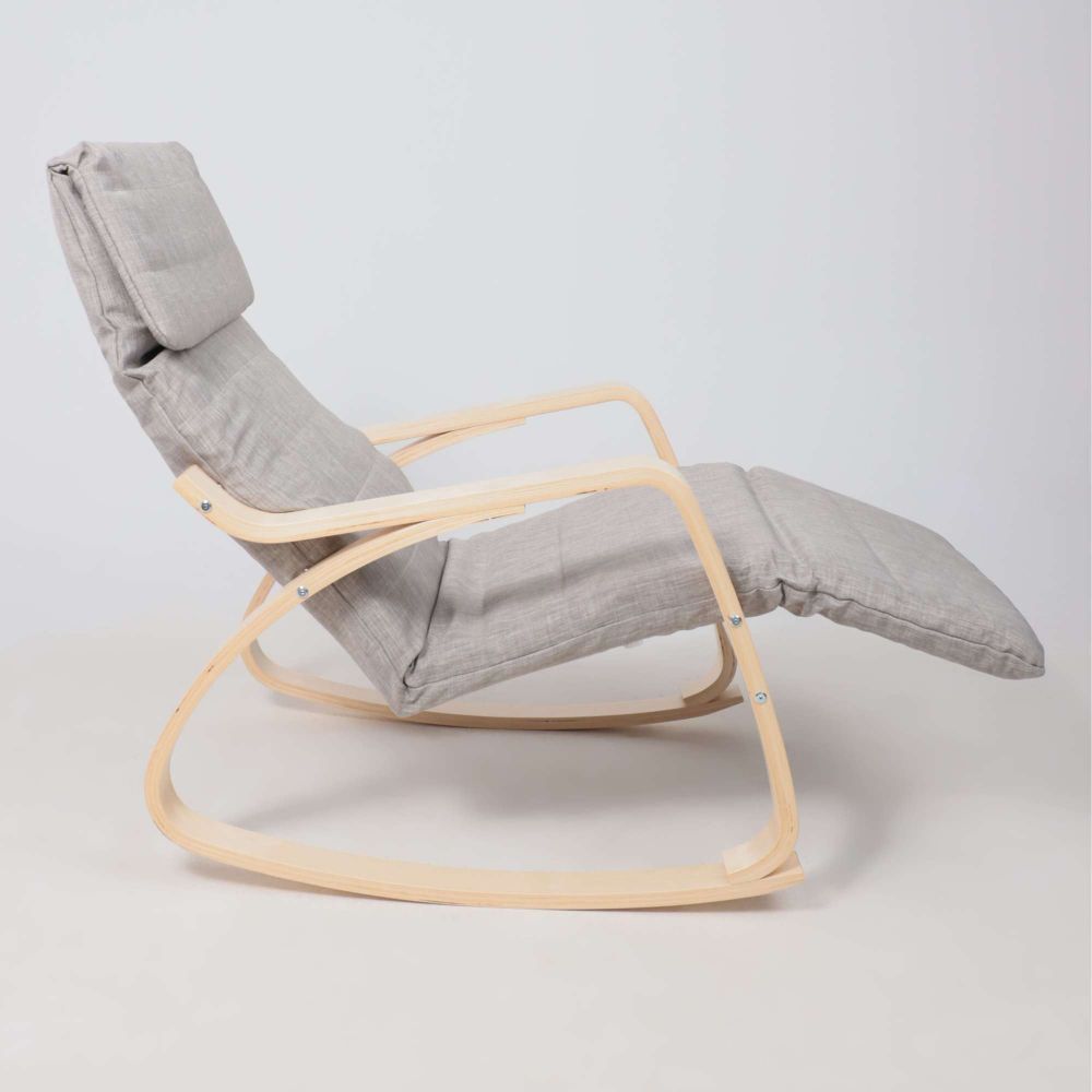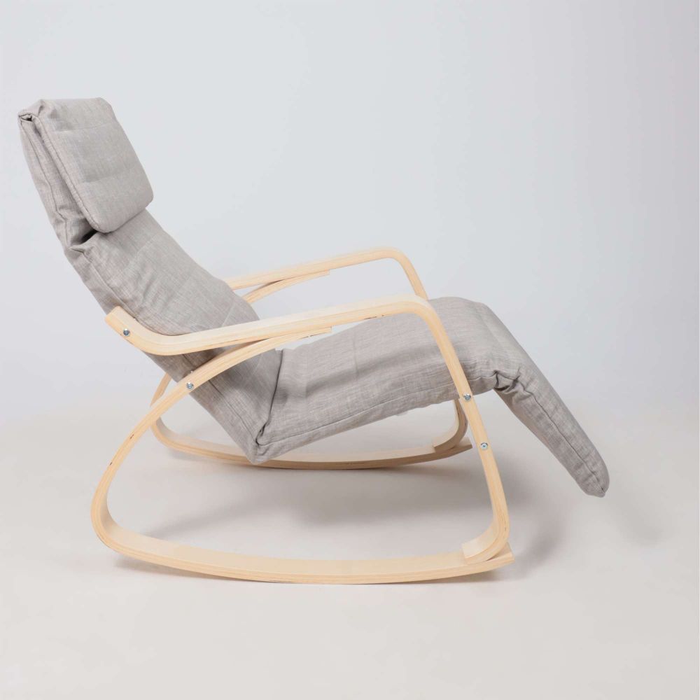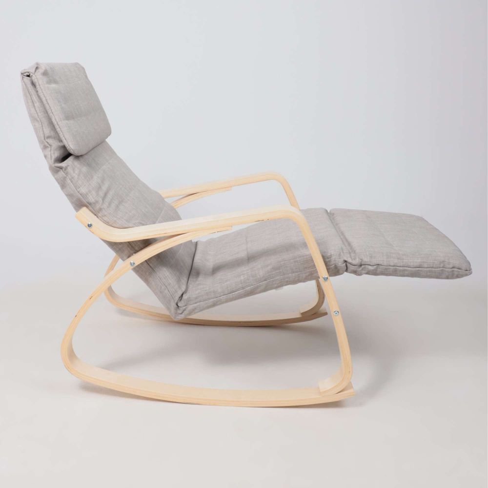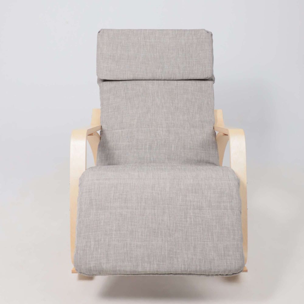 Кресло-качалка изготовлена из износостойкой ткани и натуральной древесины. Есть выступающий подголовик, и регулируемая подножка. Подойдет для дома, садовой зоны, а так же общественного места.