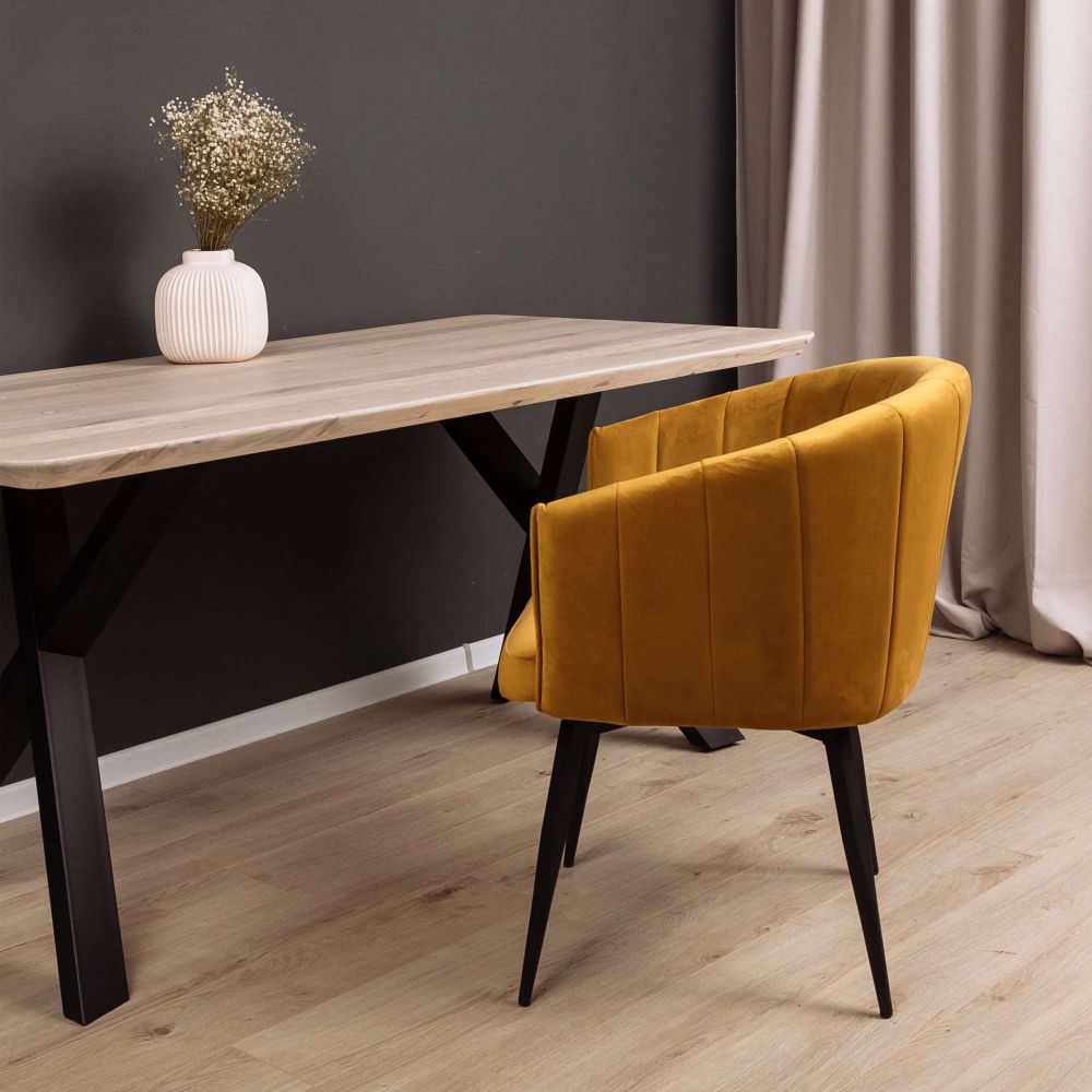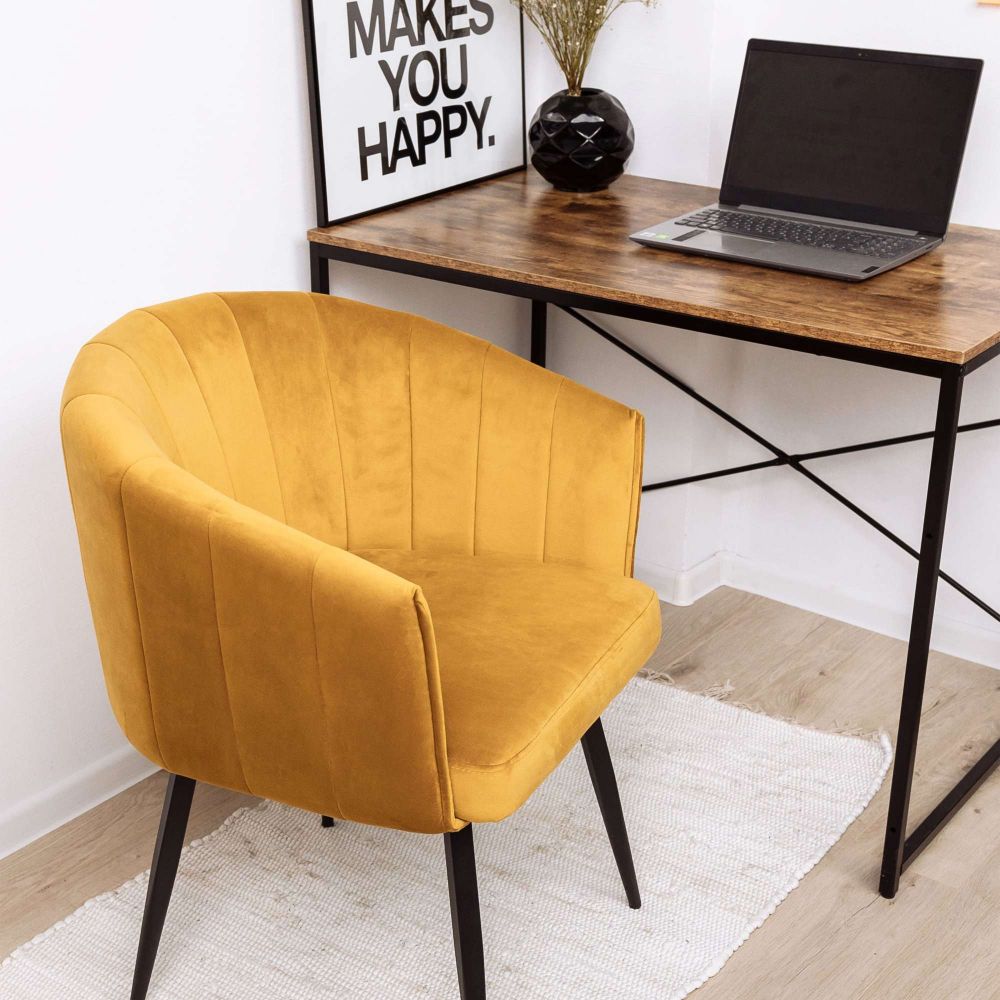Стильный стул-кресло в мягкой обивке из велюра отличается качеством исполнения и прочными материалами.Благодаря лаконичному дизайну такой стул прекрасно дополнит современный интерьер.