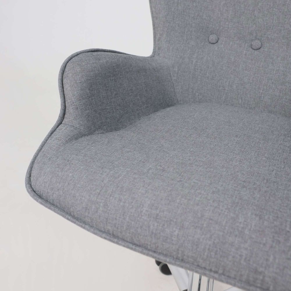 Изготовлено из износостойкой ткани и прочного металлического основания. Внутрення сторона спинки декорированна пуговицами. Комфортная посадка и наличие подлокотников обеспечивают максимальный комфорт.