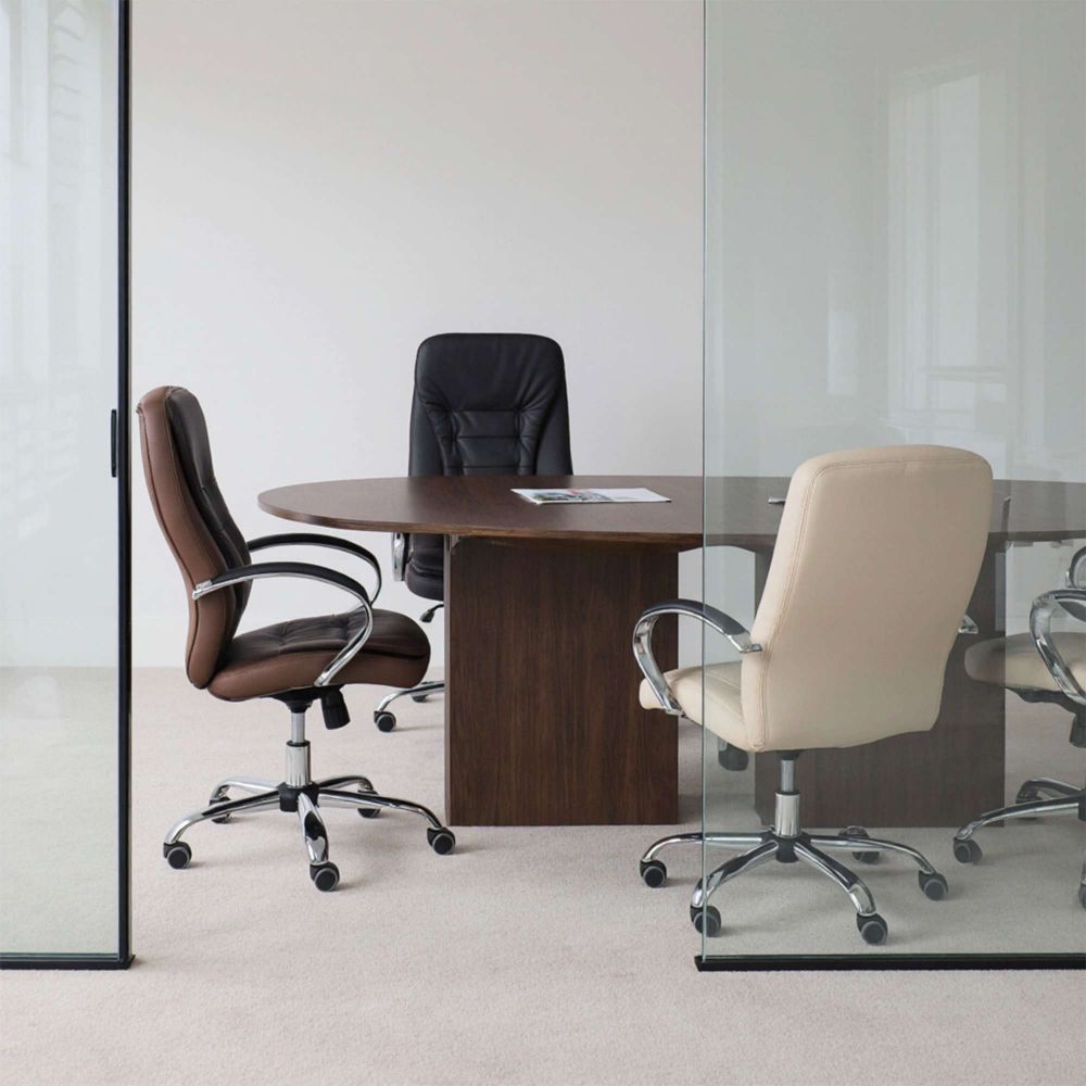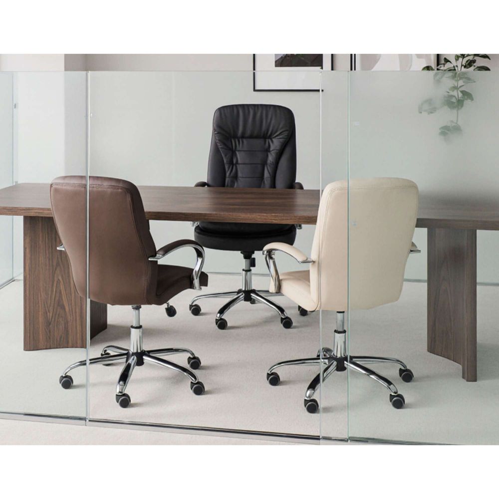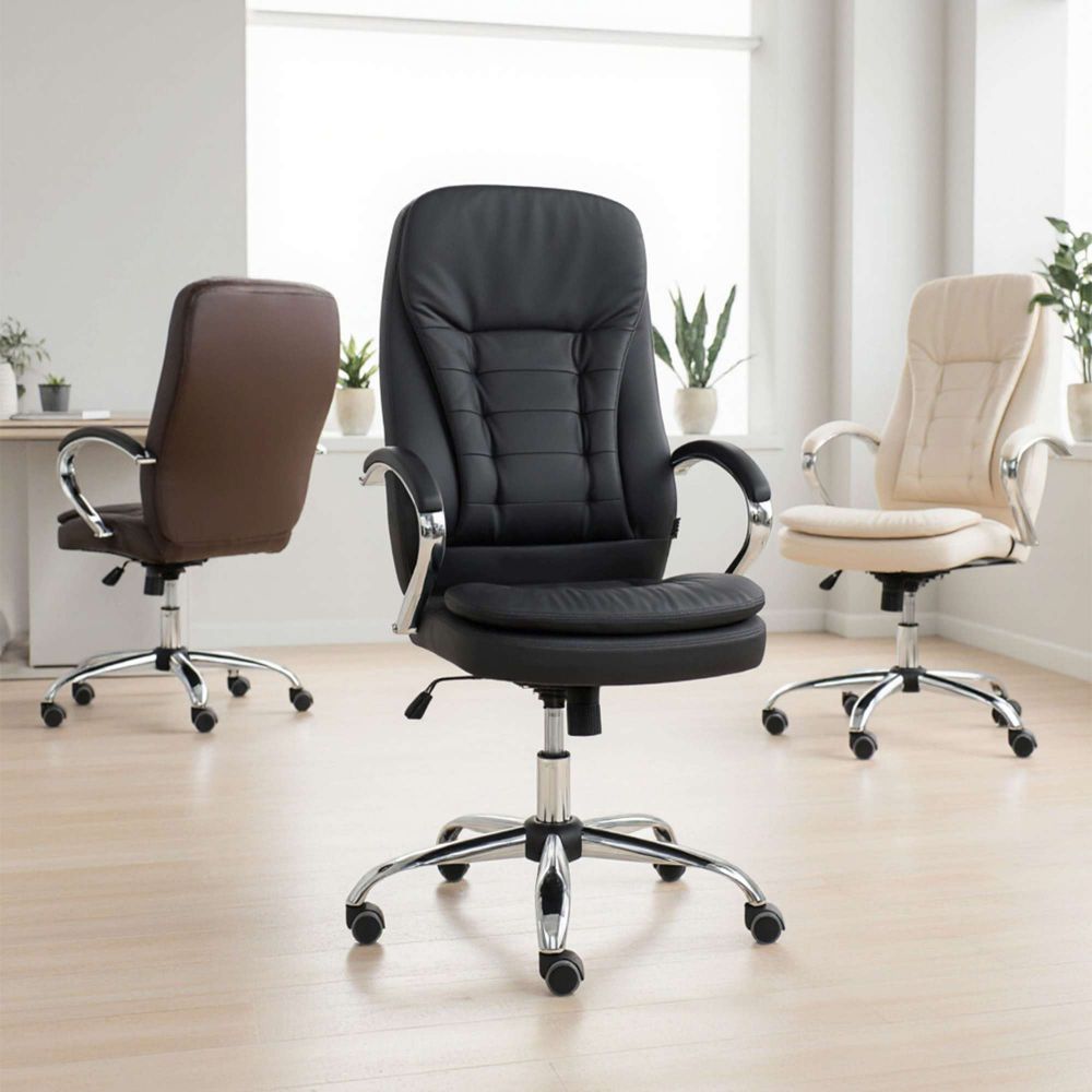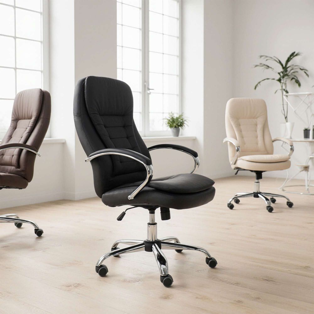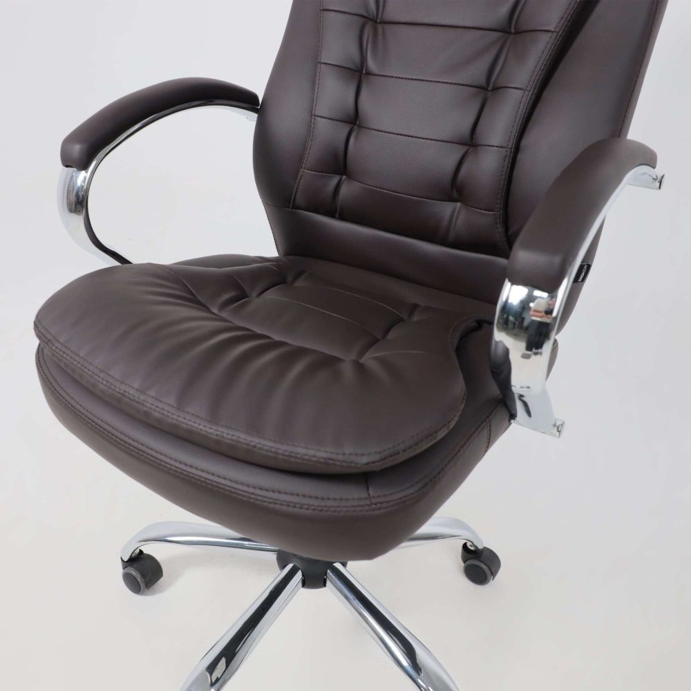 Кресло рабочее RICHARD - тепло, стиль и комфорт в одном образе. Глубокий коричневый цвет добавляет интерьеру уюта и благородства. Он менее официальный, чем чёрный, но не менее солидный - идеальный выбор для домашнего кабинета или стильного офиса. Кроме того, коричневый практичен: он не боится ежедневной эксплуатации и легко сочетается с тёплыми оттенками мебели и пола. Обивка из мягкой экокожи приятна на ощупь и проста в уходе. Механизм Tilt позволяет креслу адаптироваться под ваше тело - фиксируйте наклон, регулируйте жёсткость и оставайтесь в комфорте весь день. Прочная металлическая крестовина с хромированной отделкой и прорезиненные колёса делают модель устойчивой и бережной к полу.
