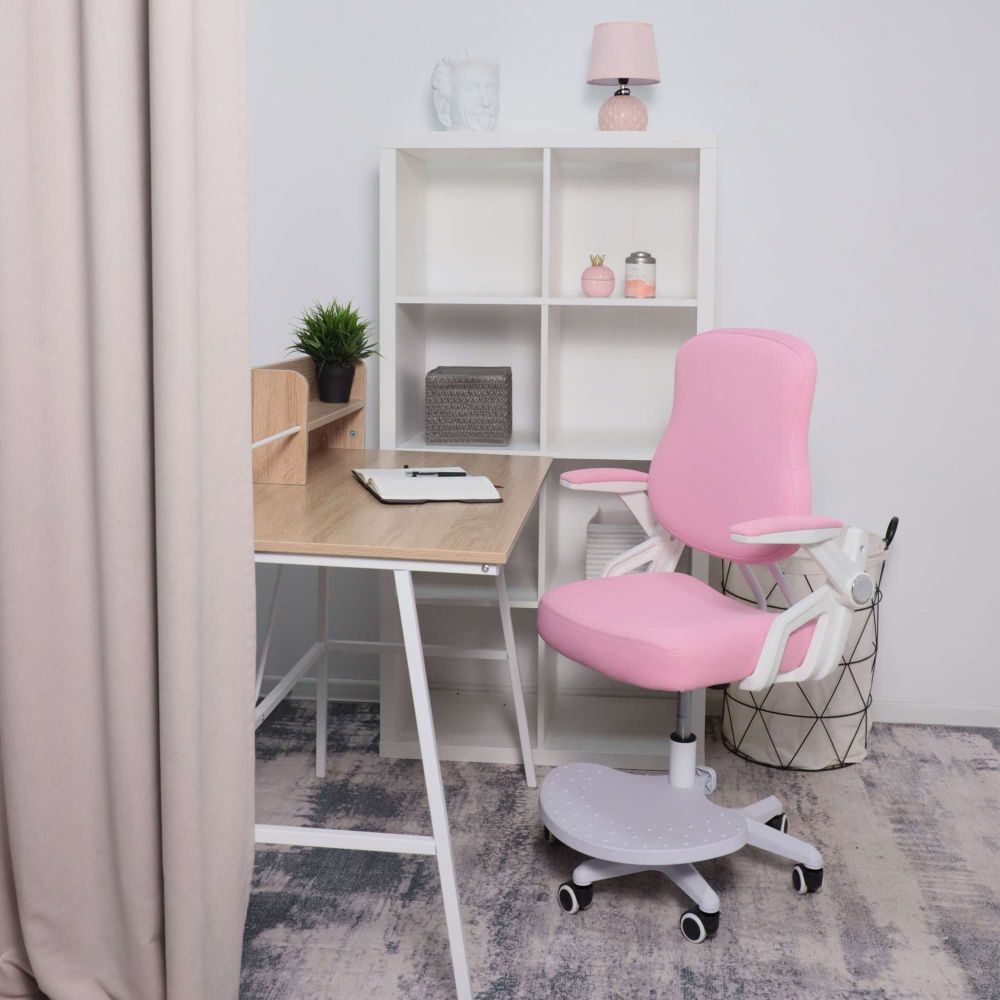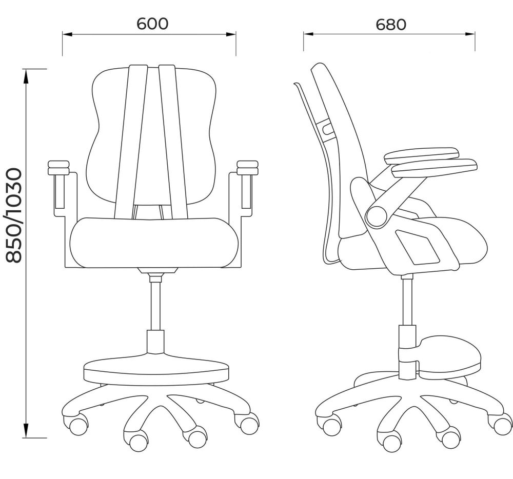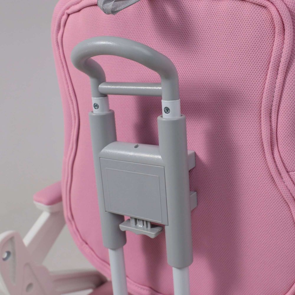 Фигурная спинка растущего кресла регулируется по высоте, а так же есть ремни крепления. В комплект входит коврик для стула, сьемный чехол для сидения. Есть регулируемая подножка.