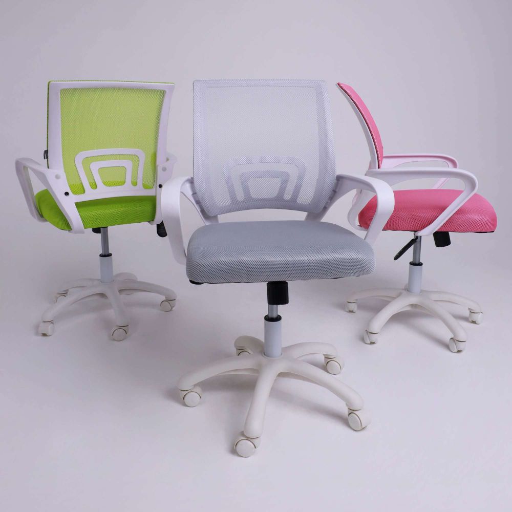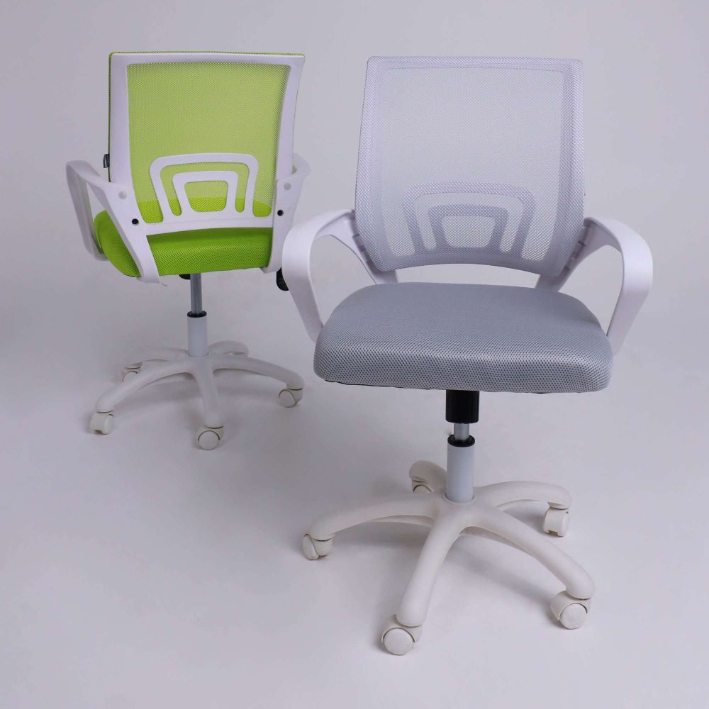 Кресло рабочее, поворотное RICCI NEW, white, ткань/сетка, светло-серый