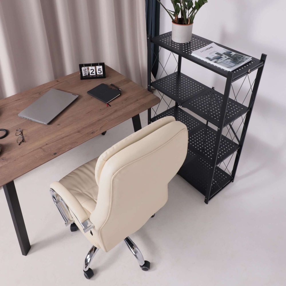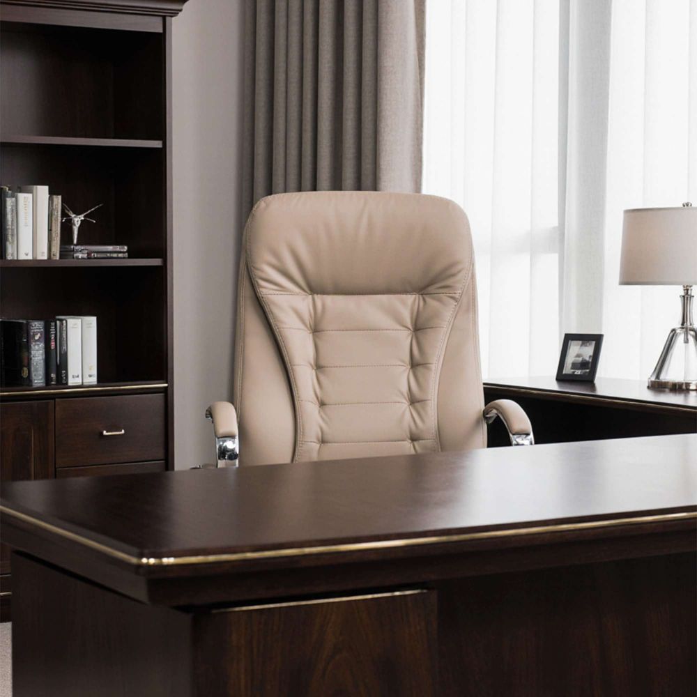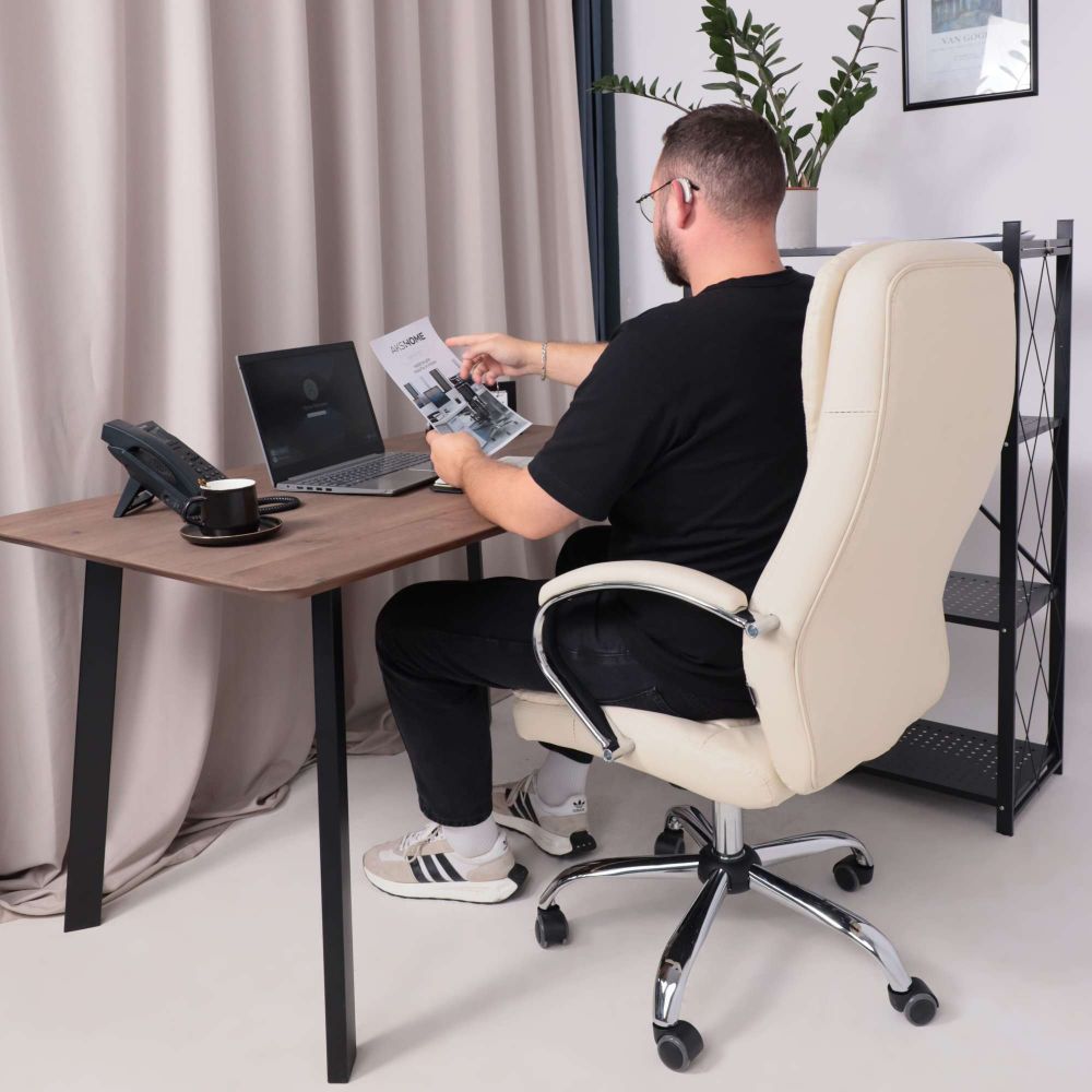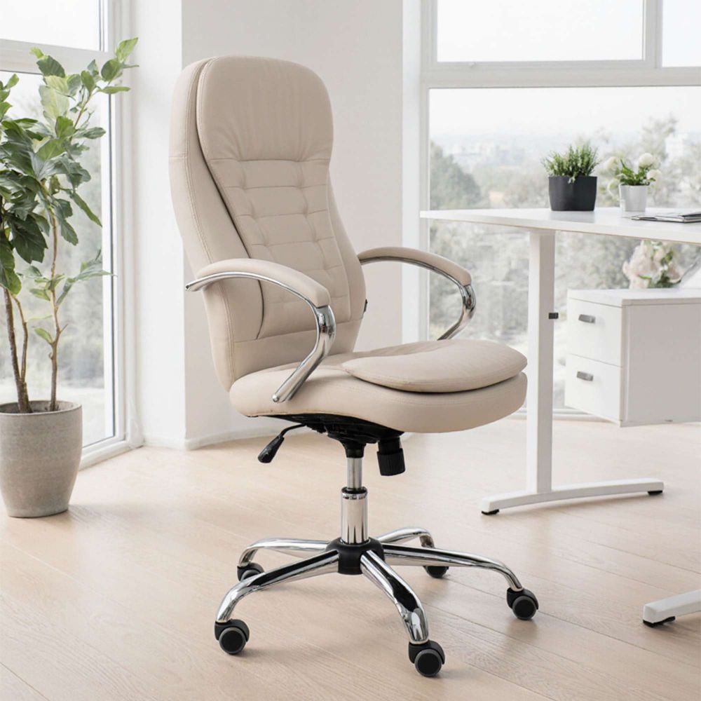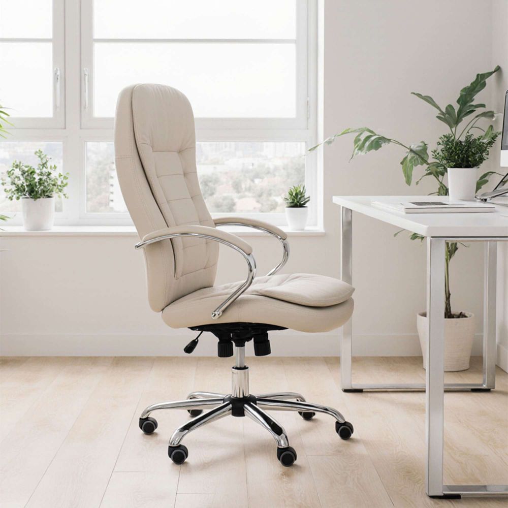 Кресло рабочее RICHARD - светлая сторона комфорта. Кремовый цвет придаёт интерьеру мягкость и утончённость. Он визуально успокаивает, способствует концентрации и легко сочетается с натуральными материалами. Универсальное решение для домашнего и офисного пространства. Обивка из прочной экокожи выглядит элегантно, легко очищается и остаётся приятной на ощупь даже при длительном использовании. Механизм Tilt с регулировкой наклона и жёсткости подстроится под вас - будь то активная работа или момент отдыха. Хромированная крестовина, прорезиненные колёса и надёжная конструкция выдерживают до 120 кг, при этом бережно относятся к напольному покрытию.