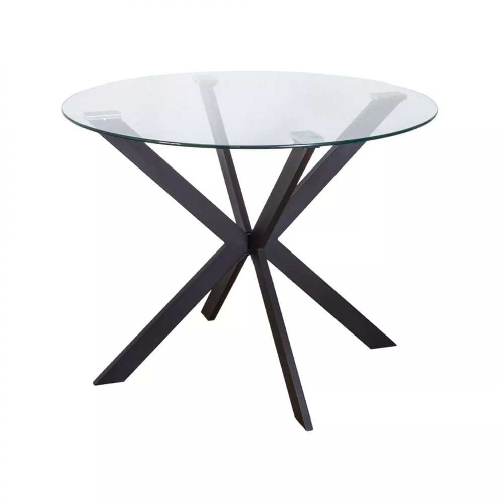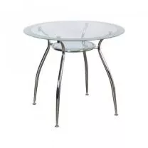 Обеденный стол со стеклянной столешницей. Закаленное стекло выдерживает большие нагрузки, обладает высокой термоустойчивостью и прочностью. Стол украшают крепкие ножки, выполненные из металла.