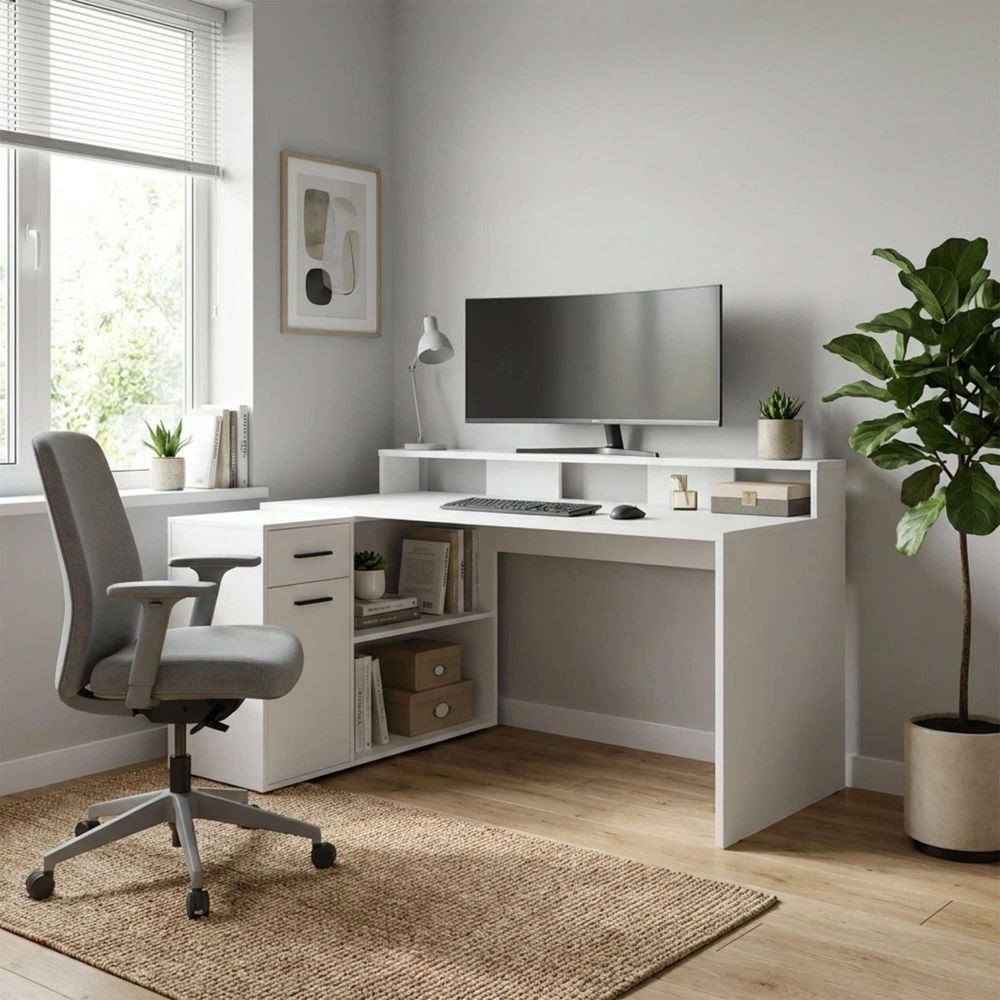 Стол компьютерный Интерлиния СК-14, белый, лдсп
