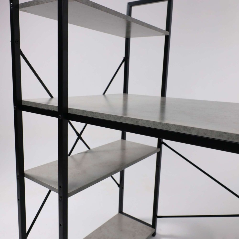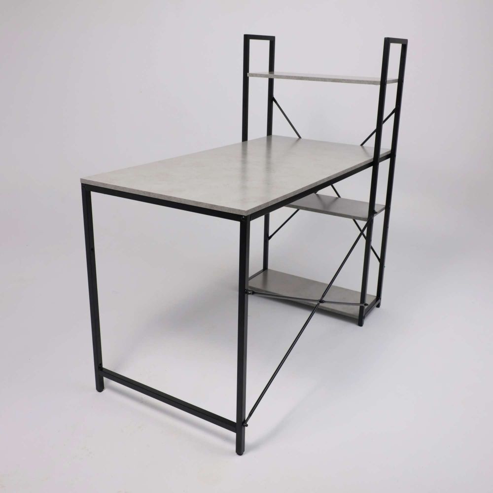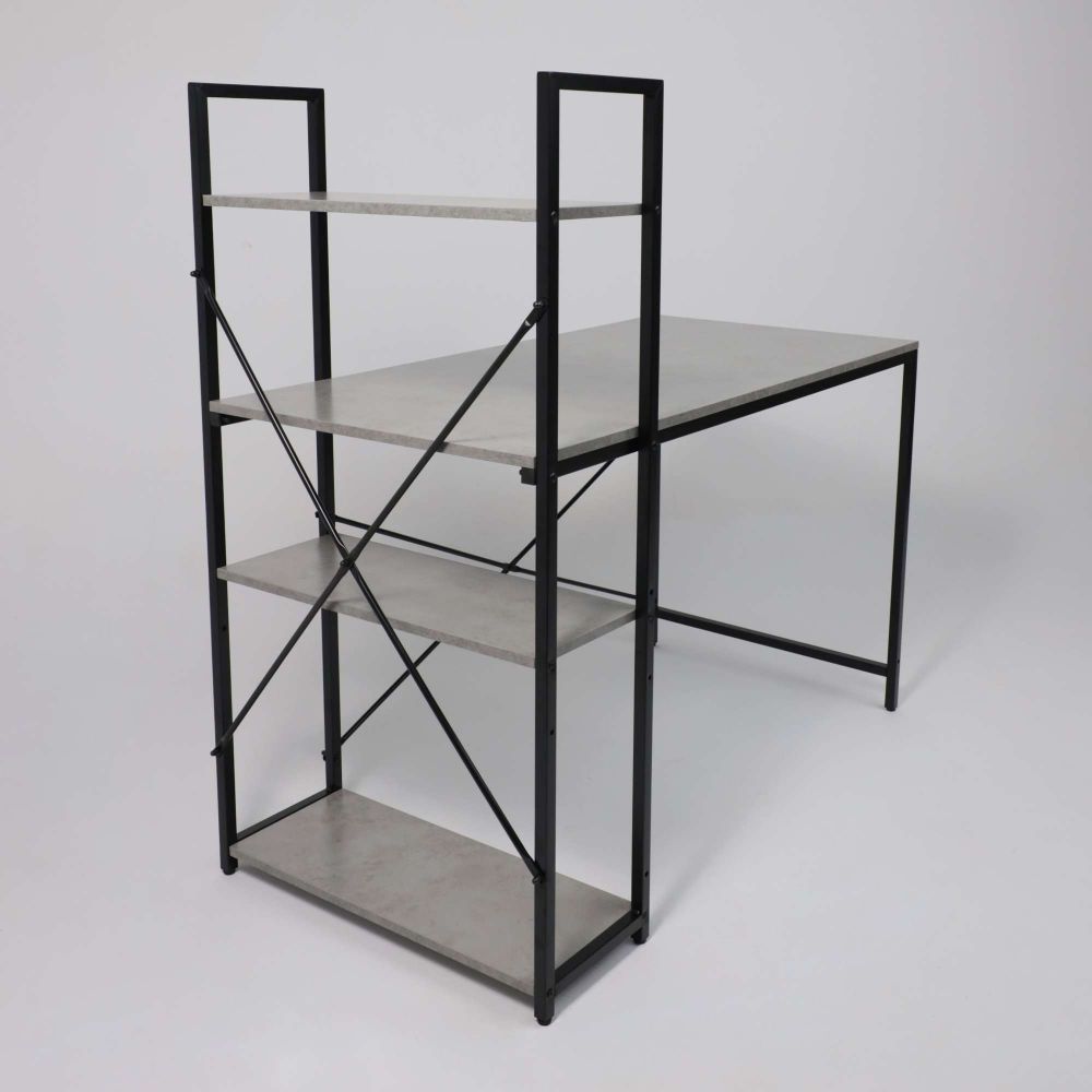 Стол письменный ONYX, со стеллажом, бетон/черный металл, 1200*600*750(1220)