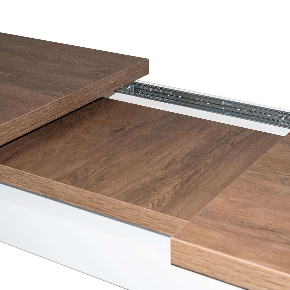 Современный раздвижной стол ONE изготовлен из качественного материала: ЛДСП - столешница, HPL-пластик - основание. Цвет столешницы отлично гармонирует с белыми ногами. Под стол легко подобрать стулья.