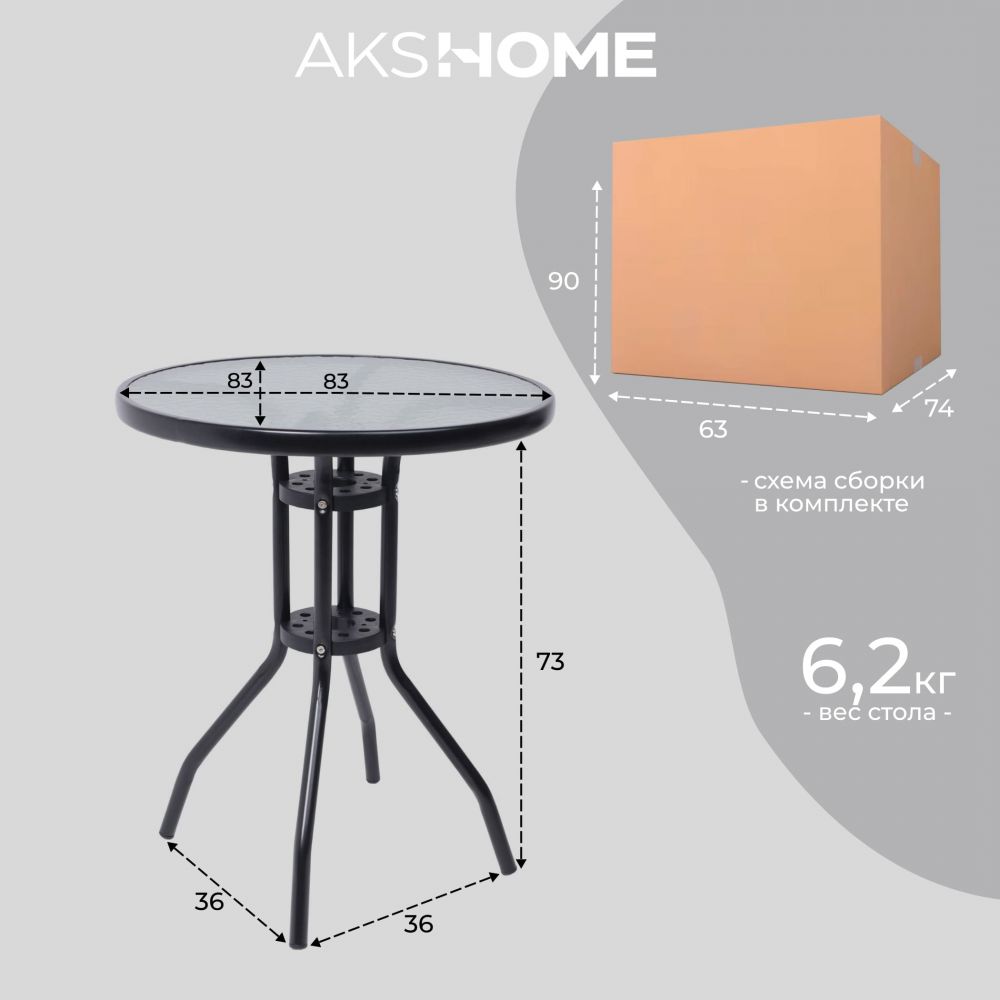 Стол садовый VERONA, 80*73, сталь-черная/закаленное стекло 5мм