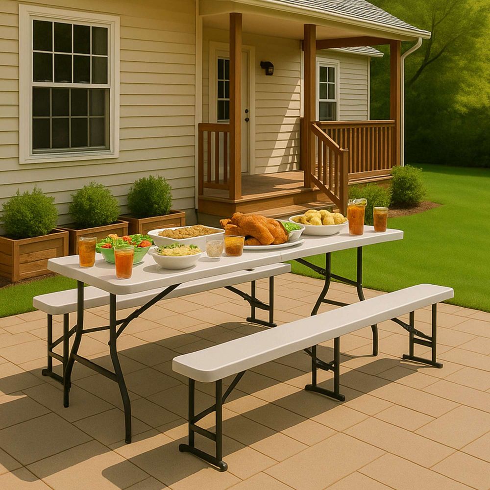 Стол садовый складной, белый, hdpe-пластик, длина 180 см