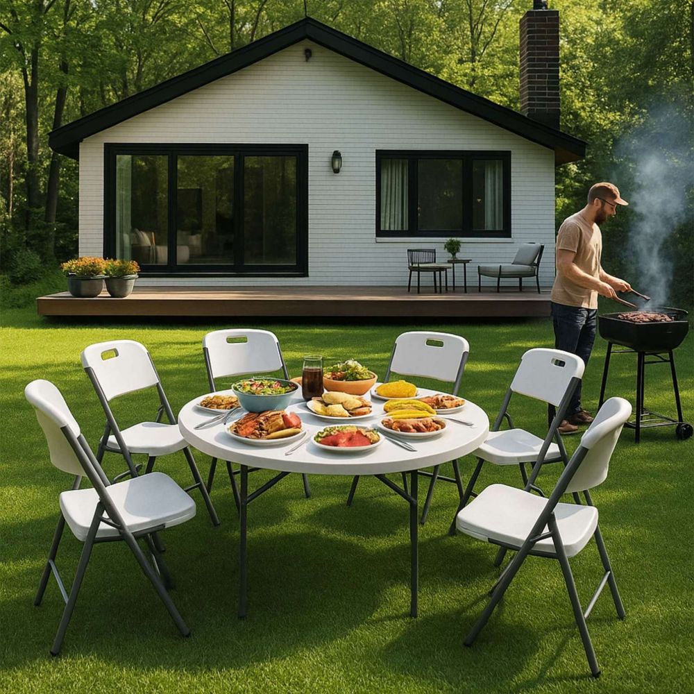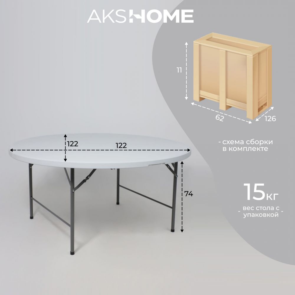 Стол садовый складной, белый, hdpe-пластик, круглый