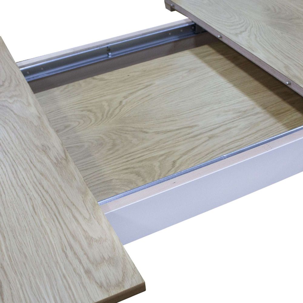 Современный раздвижной стол WENUS 2 S изготовлен из шпона (дуб натуральный) - столешница и массива бука - ножки. Простая прямоугольная форма стола позволит легко вписать его в любой интерьер кухни.