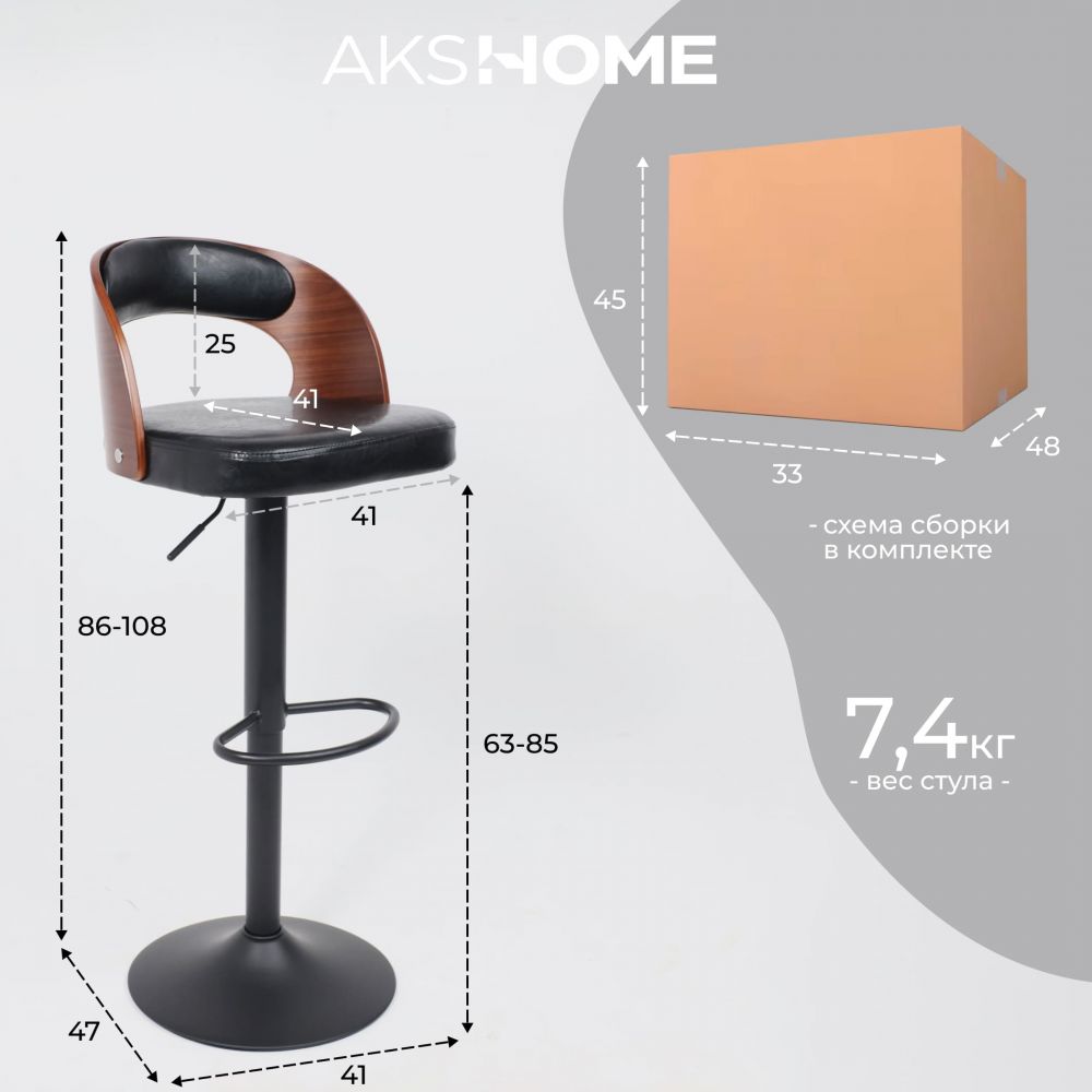 Стул барный BRUNO, черный/черный