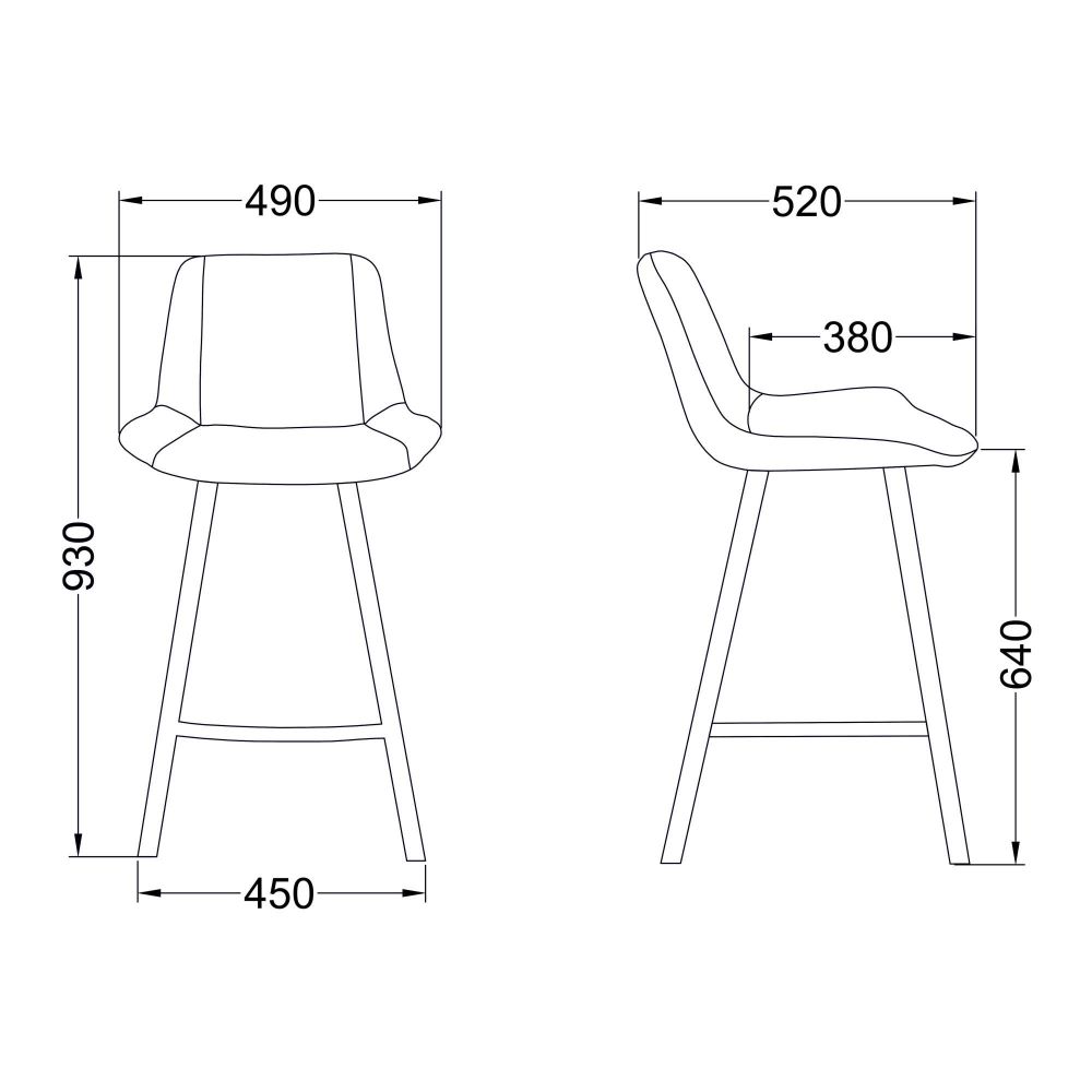 Современный барный стул в мягкой обивке из велюра без подлокотников.Ножки черные, изготовлены из металла. Удобная форма сиденья, поддерживающая спинка. Лаконичный дизайн.
