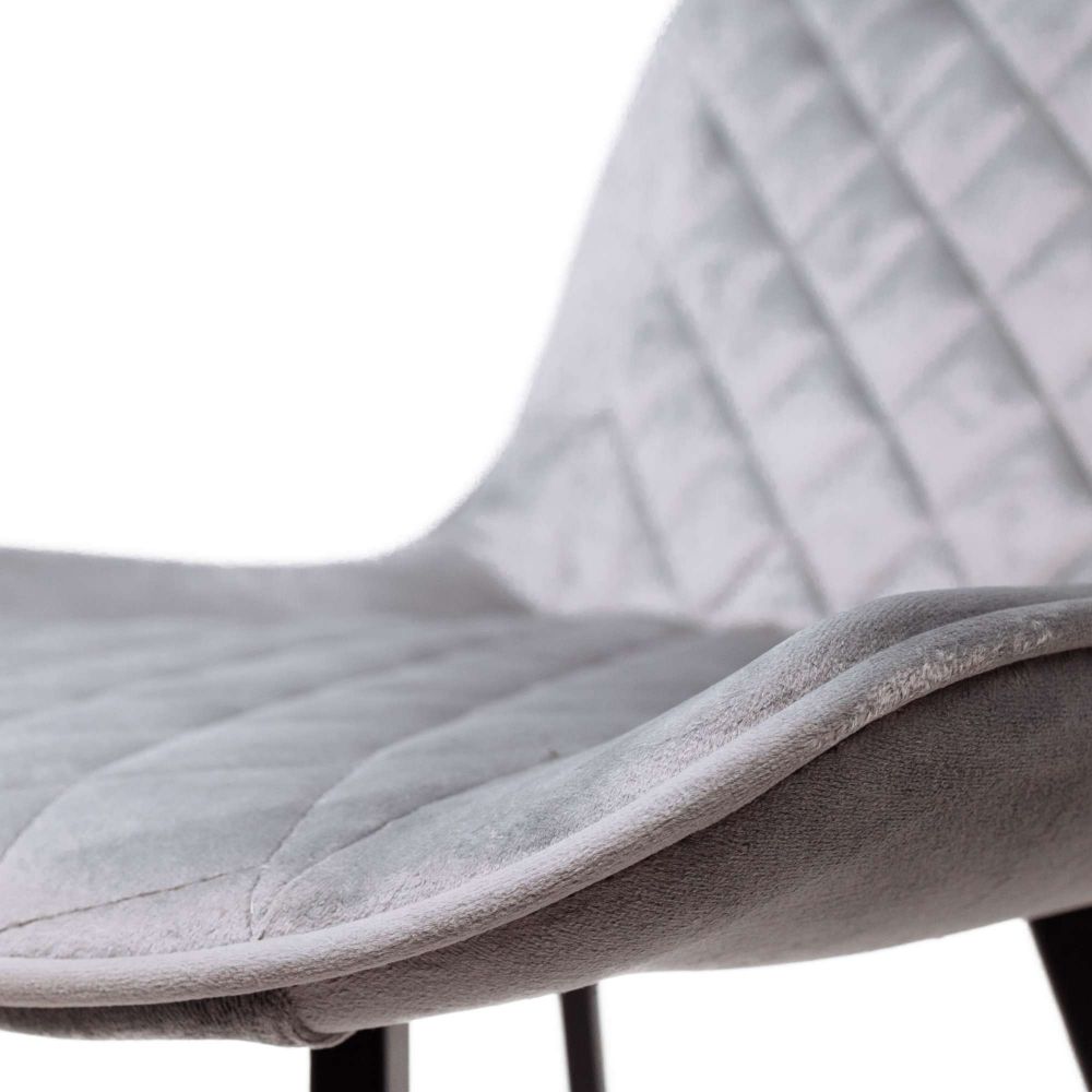 Современный барный стул в мягкой обивке из велюра без подлокотников.Ножки черные, изготовлены из металла. Удобная форма сиденья, поддерживающая спинка. Лаконичный дизайн.