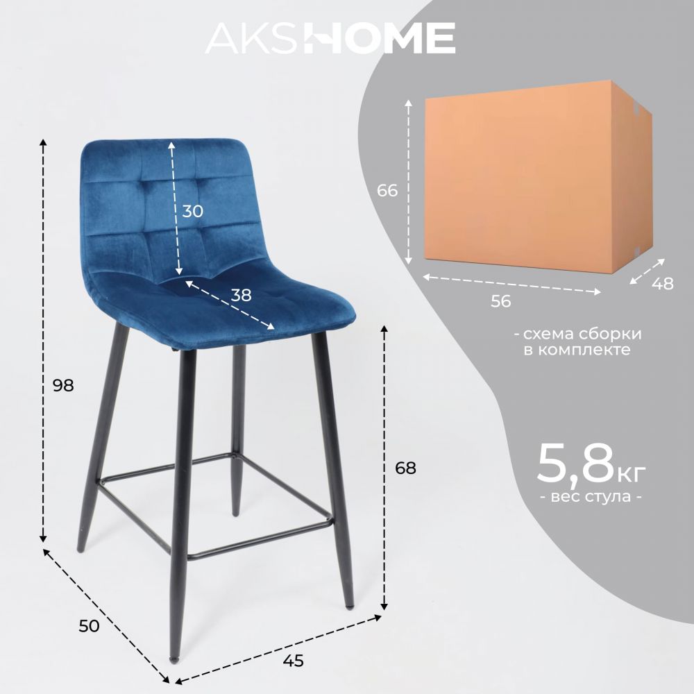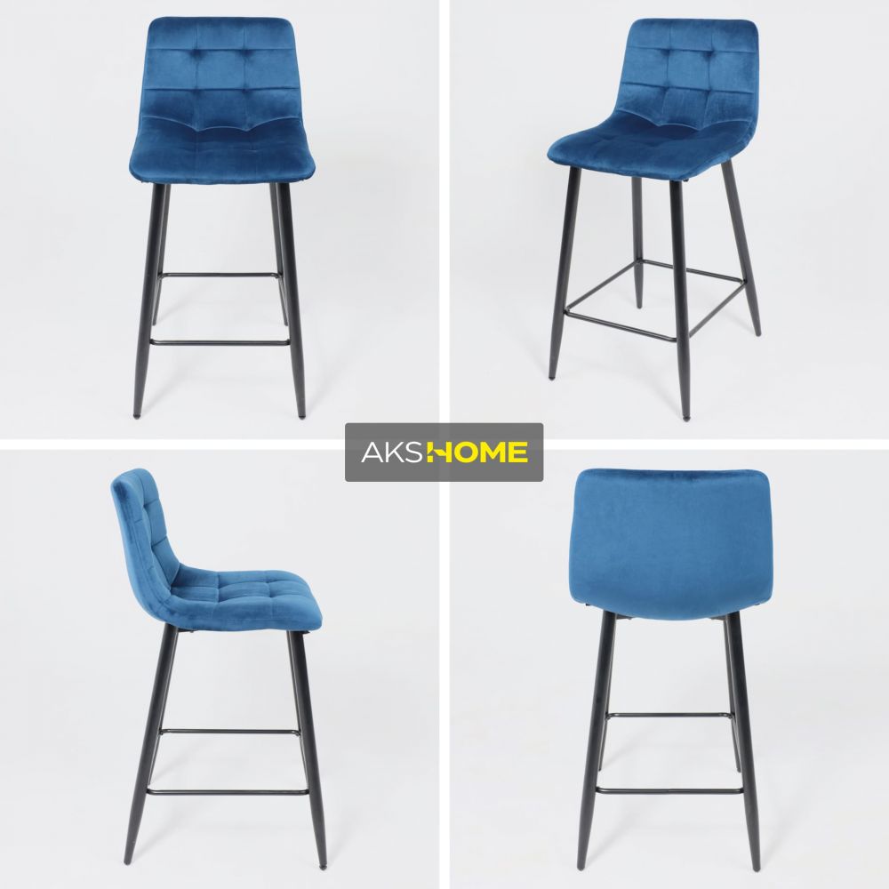 Стул барный Mia, синий, велюр