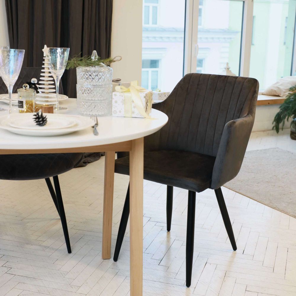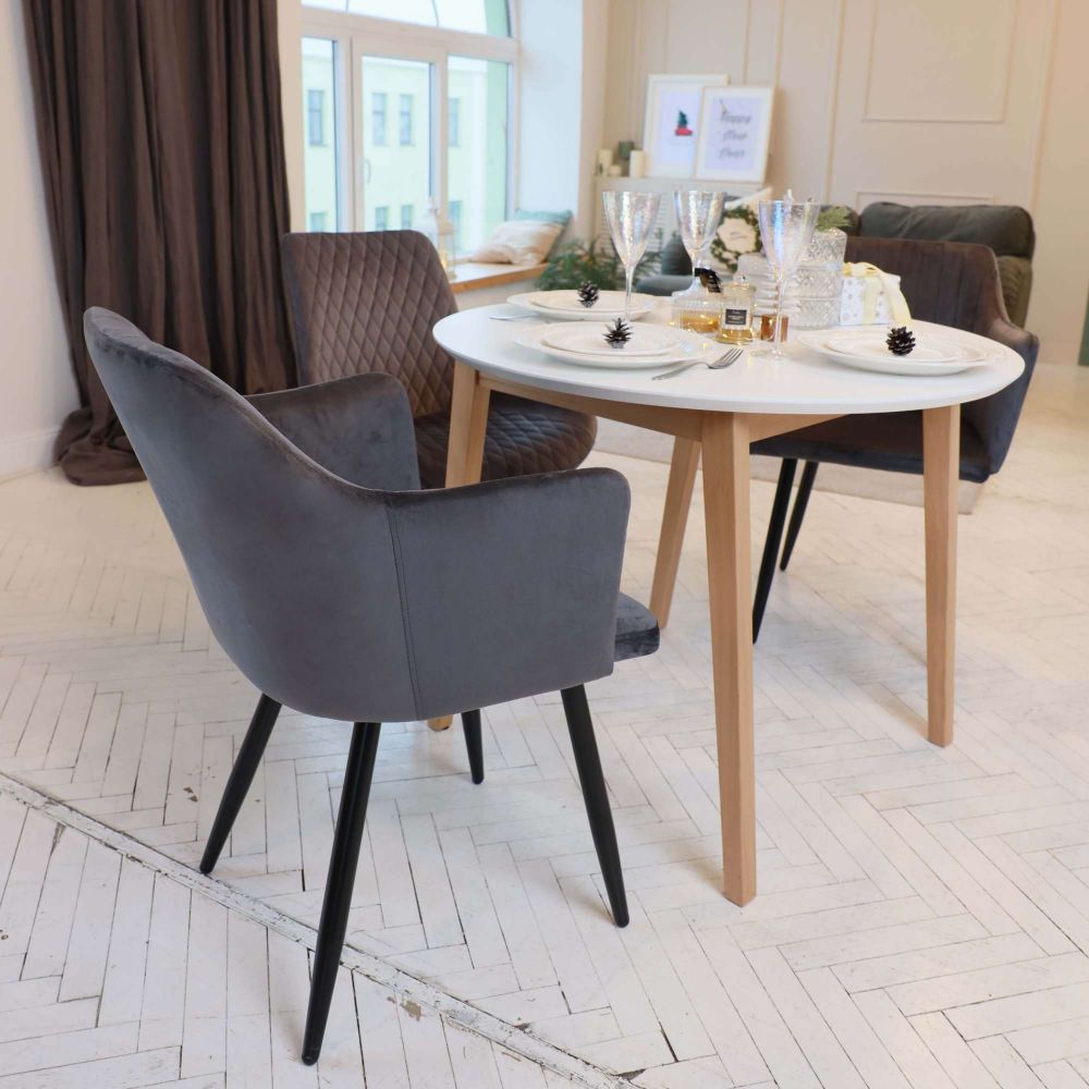 Мягкий стул с округлой спинкой анатомической формы и удобными подлокотниками подарит комфорт и уют. В качестве обивки используется велюр - прочный износостойкий и приятный на ощупь материал.