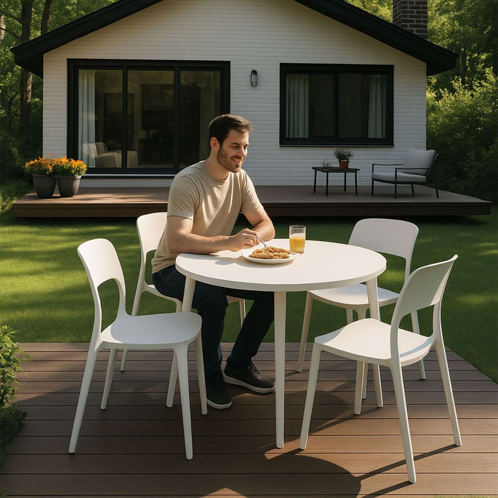 Стильные стулья OLAF отлично подойдут для сада, кухни, кафе, выездных мероприятий и пляжного отдыха. Изготовлены из пластика, который устойчив к воздействию ультрафиолетовых лучей. Стулья легко транспортируются, не занимают много места, сохраняют свои эстетические свойства даже при длительном пребывании на открытом воздухе. Влагостойкий материл хорошо переносит любые погодные условия и перепады температур. Белый цвет придает стульям элегантный внешний вид. Максимальная нагрузка - до 120 кг. Ширина: 460 мм., глубина: 500 мм., высота: 790 мм., высота до сиденья: 440 мм. Пластиковые стулья OLAF не требуют особого ухода. Достаточно обычной влажной тряпки для удаления пыли и загрязнений с поверхности мебели.