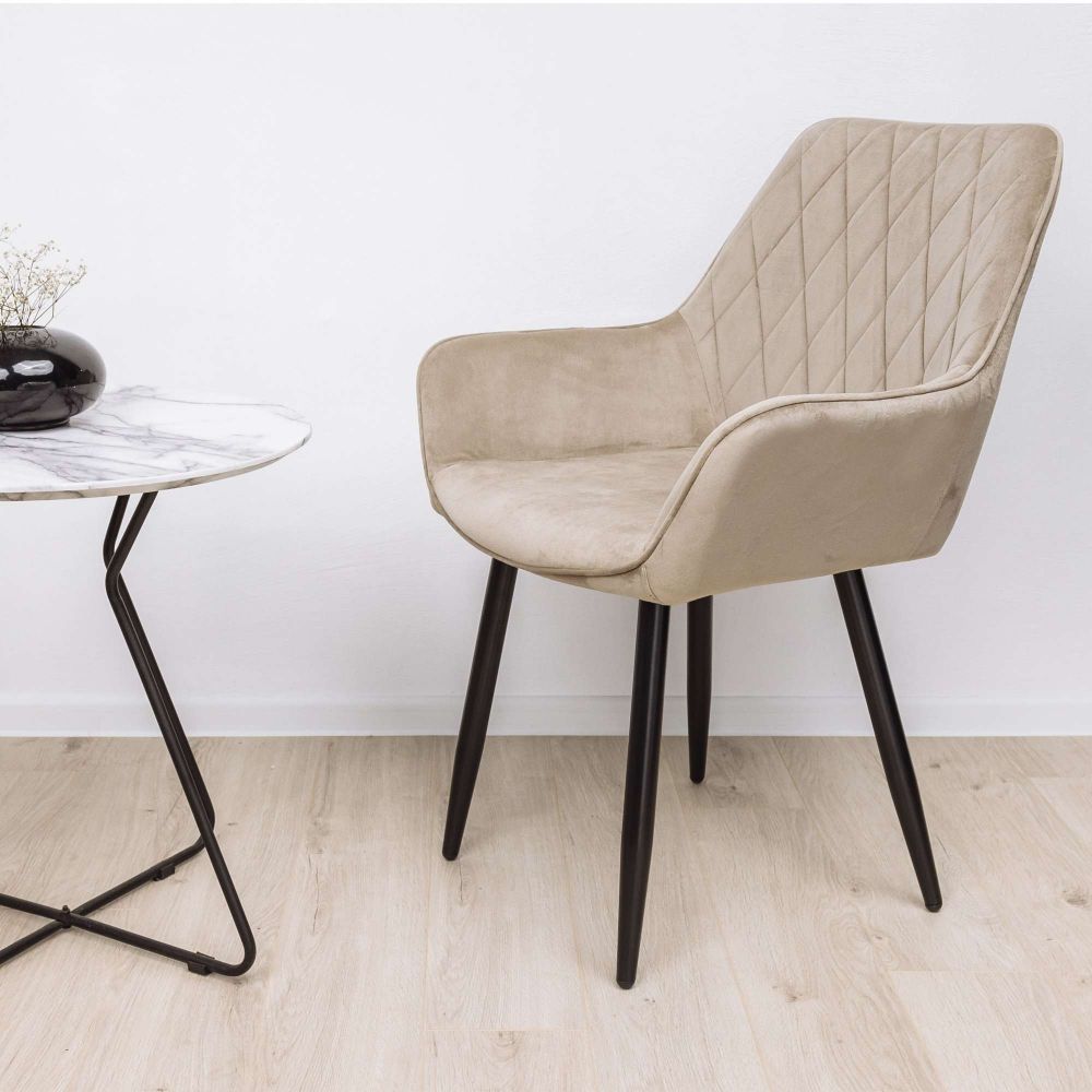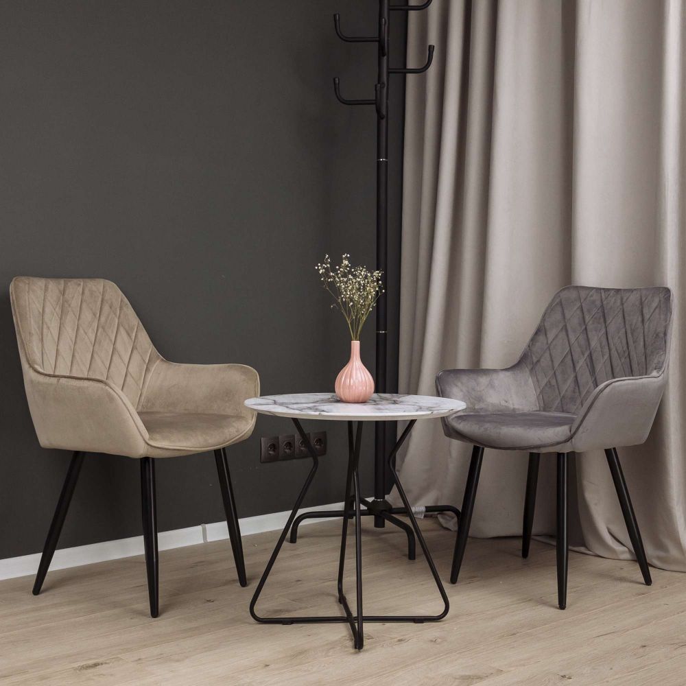 Яркое кресло с широким сиденьем и удобной эргономичной спинкой, декорированной строчкой в виде ромбов. Высокопрочная обивка из велюра. Металлический каркас выдерживает нагрузку до 120 кг.