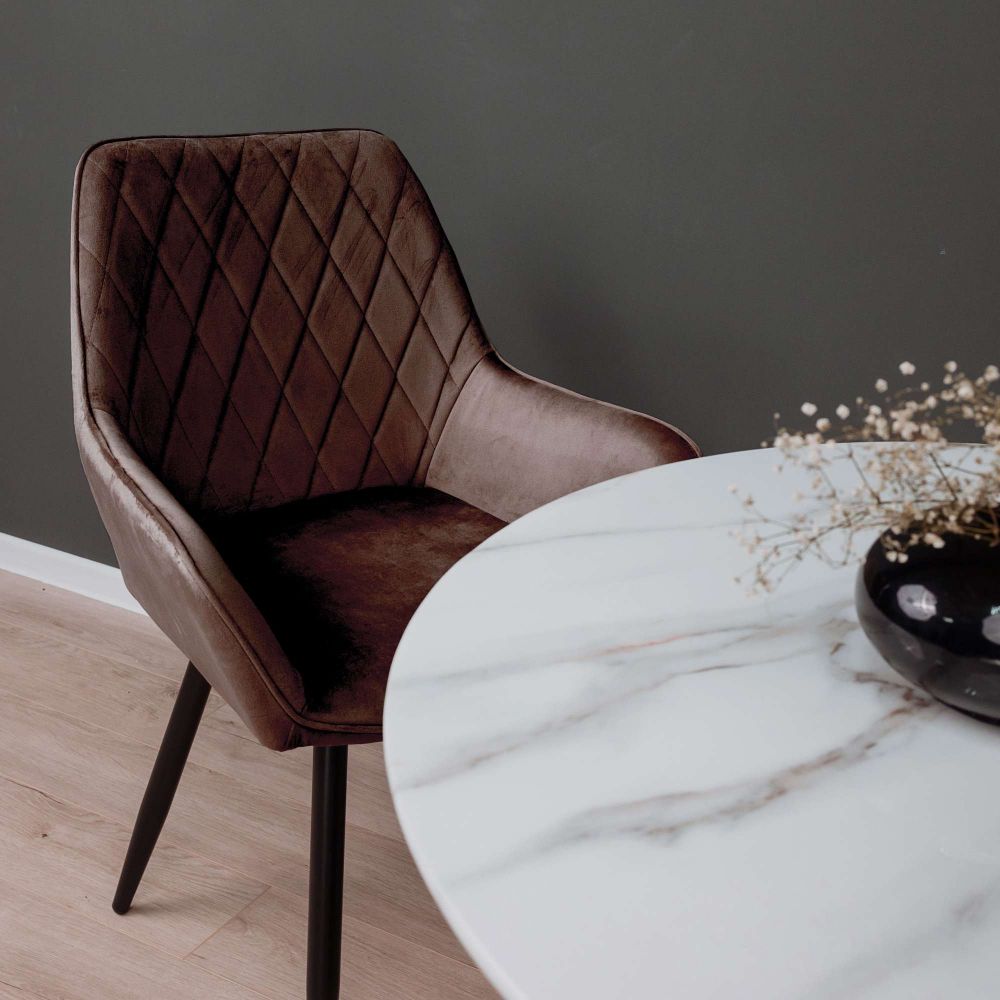 Яркое кресло с широким сиденьем и удобной эргономичной спинкой, декорированной строчкой в виде ромбов. Высокопрочная обивка из велюра. Металлический каркас выдерживает нагрузку до 120 кг.