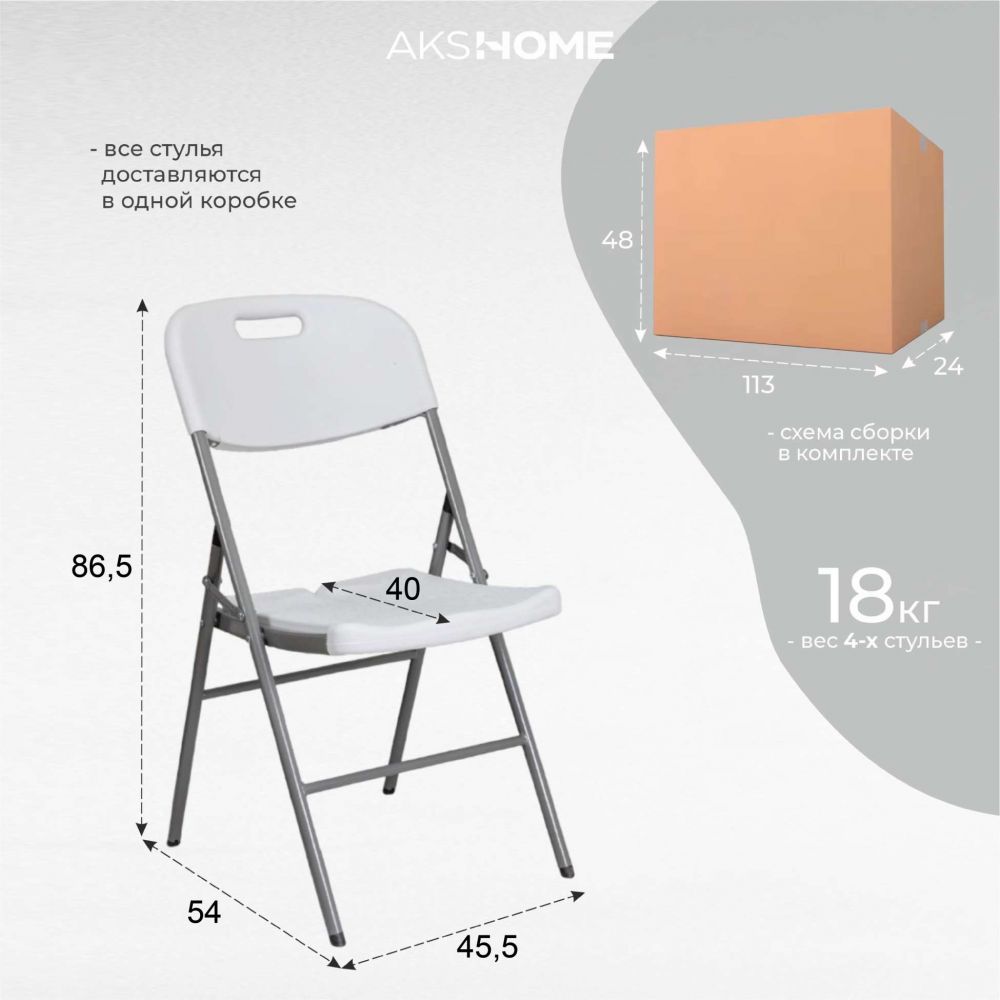 Стул садовый складной со спинкой, белый, hdpe-пластик