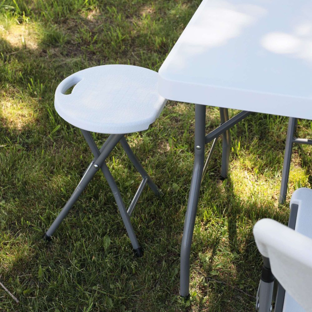 Складной стул изготовлен из прочного пластика, основание из металла. Можно брать с собой на природу, рыбалку, а так же использовать дома или сдавать в аренду для массовых мероприятий.